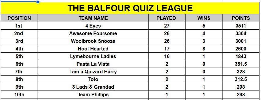 **** QUIZ RESULTS **** Still all to play for for the top of table prize 🏆 🙂 Well done last night everyone taking part 👏 1st Hoof Hearted 132pts 2nd Lymbourne Ladies 120pts 3rd = Awesome Foursome & Other Hoof Hearted 117pts NOVEMBER QUIZZES WILL BE VERY RANDOMISED & DONT FORGET TO PENCIL YOUR TEAM IN FOR CHRISTMAS QUIZ…. Mince pies & Muled wine..